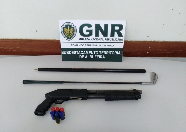 O Comando Territorial de Faro, através do Subdestacamento Territorial de Albufeira, no dia 15 de julho, deteve um homem de 48 anos, indiciado pelos crimes de detenção de arma proibida e de uso e porte de arma sob efeito de álcool, em Albufeira.