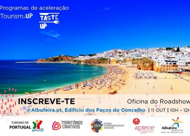 O Município de Albufeira vai acolher uma das oficinas do roadshow, no dia 11 de outubro, entre as 10h00 e as 12h00, no edifício da Câmara Municipal. Durante o workshop serão apresentados os Programas de Aceleração e dinamizadas sessões de formação sobre «Oportunidades e Tendências no Turismo», «Turismo Gastronómico e Enoturismo» e «Empreendedorismo e Proposta de Valor».