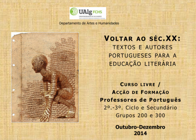 "Voltar ao Século XX: textos e autores portugueses para a educação literária" é o título do curso livre e/ou ação de formação para professores de Português, que irá decorrer entre os dias 22 de outubro e 5 de dezembro, das 18h00 às 20h30, na sala 3.18 do complexo pedagógico, campus de Gambelas. As inscrições deverão ser efetuadas até ao dia 17 de outubro.