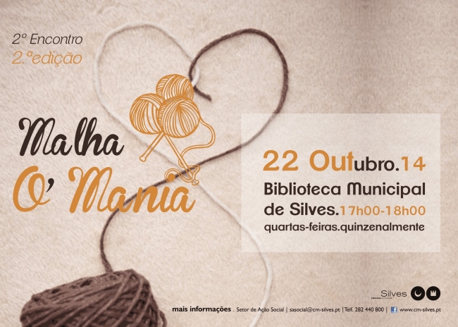 Promovido pela Câmara Municipal de Silves, através do seu setor de Ação Social, a Biblioteca Municipal de Silves volta a receber amanhã, dia 22 de outubro, pelas 17h00, mais um encontro “Malha Ó Mania”.