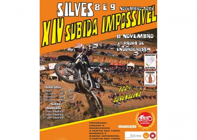 Dia 9 de novembro, a partir das 10h00, a localidade do Enxerim volta a receber aquela que já é a 14.ª edição da Subida Impossível. Considerada única na Península Ibérica, esta prova convida os mais arrojados e destemidos das duas rodas a percorrer 100m de uma subida quase impossível, e é promovida pelo Moto Clube de Albufeira e pela Câmara Municipal de Silves.