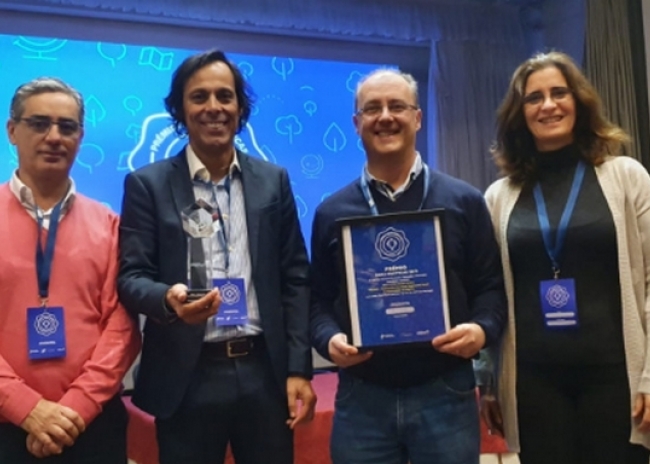 Para receber o prémio estiveram Mauro Figueiredo e Conceição Ribeiro, docentes da Universidade do Algarve, Francisco Soares e Luís Vilhena, professores do Agrupamento de Escolas Pinheiro e Rosa.
