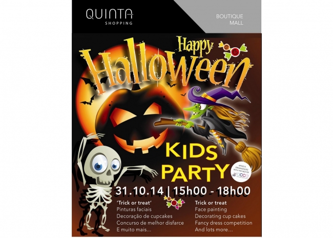 Entre no espirito do Halloween e junte-se a nós, na sexta-feira, dia 31 de outubro, a partir das 15.00h, para uma tarde repleta de jogos e animação para as crianças de todas as idades, e lembre-se de vir com o seu fato mais assustador para participar no concurso de melhor disfarce, e ganhe as surpresas oferecidas pelas lojas, restaurantes e bares do Quinta Shopping.