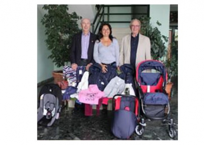 Será com um grande sorriso que jovens mães de Almancil, irão receber das mãos de Peter Hinze e Brian Pullin, membros do Rotary Clube Almancil Internacional e da Dra. Conceição Vicente, em representação da ASCA (Associação Sócio Cultural de Almancil) um carrinho, um “ovo” e roupas para bebé.