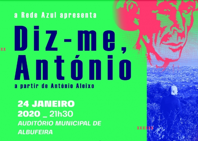 No próximo dia 24 de janeiro (sexta-feira), pelas 21h30, o Auditório Municipal de Albufeira apresenta «Diz-me António», um espetáculo inspirado no universo de António Aleixo, num tributo à sua obra e aos 120 anos do seu nascimento. Os bilhetes custam € 5,00 e estão à venda nos locais habituais.