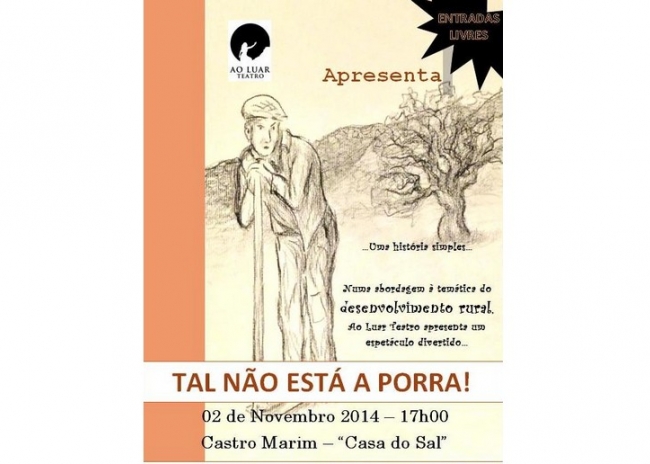 Dando continuidade à sua política de desenvolvimento e dinamização cultural do concelho, a Câmara Municipal de Castro Marim recebe, na Casa do Sal, no próximo dia 02 de novembro, pelas 17h00, a peça de teatro “Tal Não Está a Pôrra”, apresentada pelo grupo “Ao Luar Teatro”.