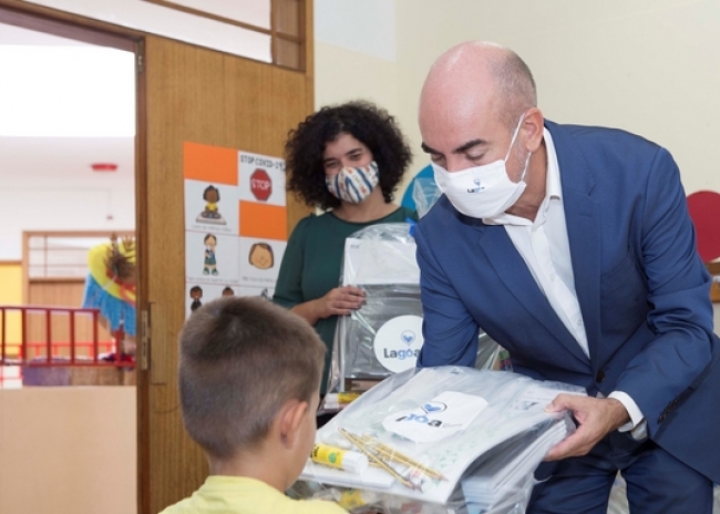 A oferta de material escolar a todas as crianças do pré-escolar e 1º ciclo, independentemente do escalão de ação social escolar, num valor global de 40 000 euros, foi uma das componentes do programa de apoio ao funcionamento das escolas de Lagoa.