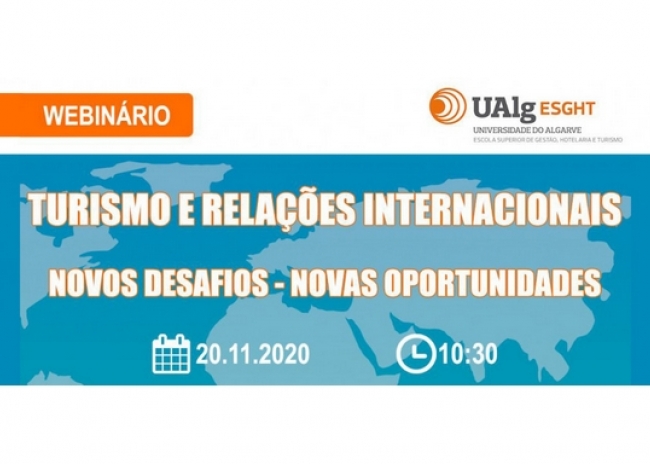 «Turismo e Relações Internacionais: Novos Desafios - Novas Oportunidades» serve de mote para o webinário que irá realizar-se no dia 20 de novembro, às 10h30 organizado pelo curso de licenciatura em Turismo, ministrado no Campus de Portimão.