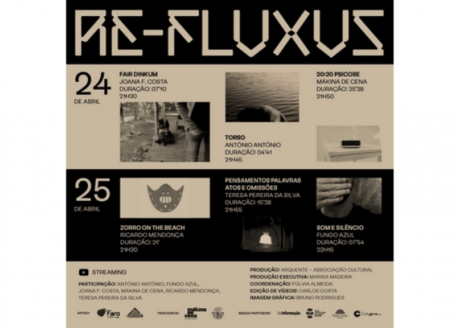 Depois de dois anos de pausa, em parte devido à pandemia, o RE-FLUXUS está de regresso. A segunda edição da iniciativa decorre dias 24 e 25 de abril, em formato online, no YouTube da ArQuente, entre as 21h30 e as 22h30.