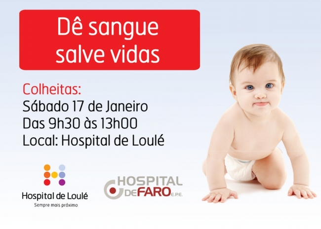 O Hospital de Loulé em parceria com o Hospital de Faro irá proceder à recolha de sangue no sábado dia 17 de janeiro das 9:30 às 13:00 no Hospital de Loulé. Não perca esta oportunidade de ajudar! Um simples gesto pode salvar vidas.