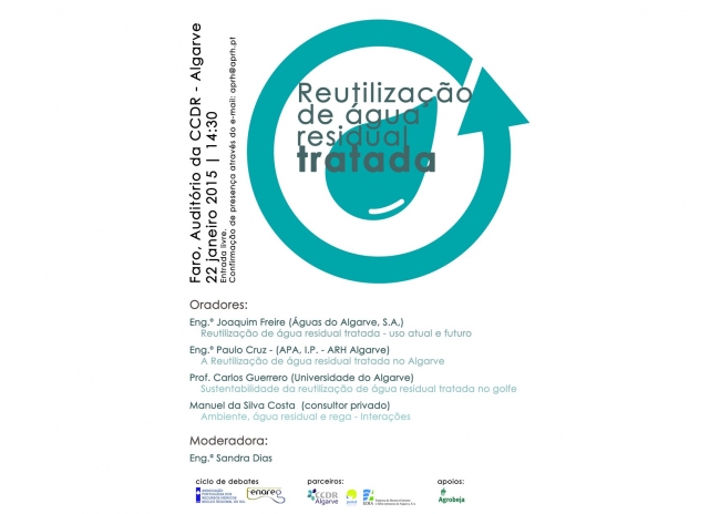 Realiza-se no dia 22 de janeiro, pelas 14h30, no Auditório da CCDR-Algarve, em Faro, o Debate “Reutilização de Água Residual Tratada”.
