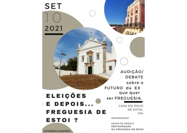 O Grupo de Apoio à Restauração da Freguesia de Estoi, com o apoio da Casa do Povo de Estoi, vai levar a efeito uma audição/debate sobre o futuro da aldeia de Estoi e de toda a Ex freguesia.