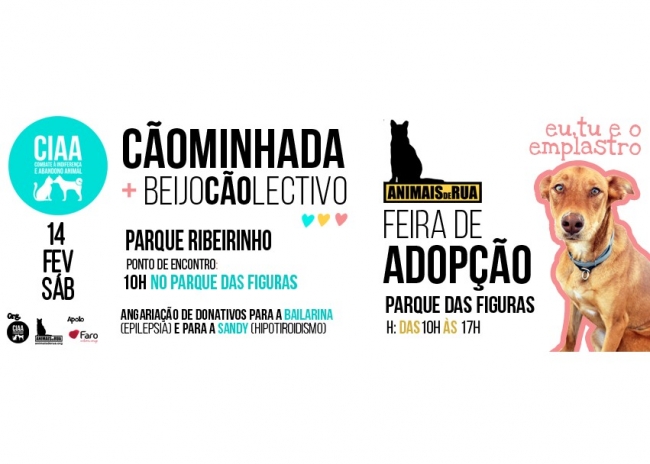 O CIAA (Combate à Indiferença e Abandono Animal) e a Associação Animais de Rua (Núcleo de Faro) promovem no próximo dia 14 de Fevereiro uma Cãominhada e Feira de Adoção, no Parque das Figuras, em Faro.