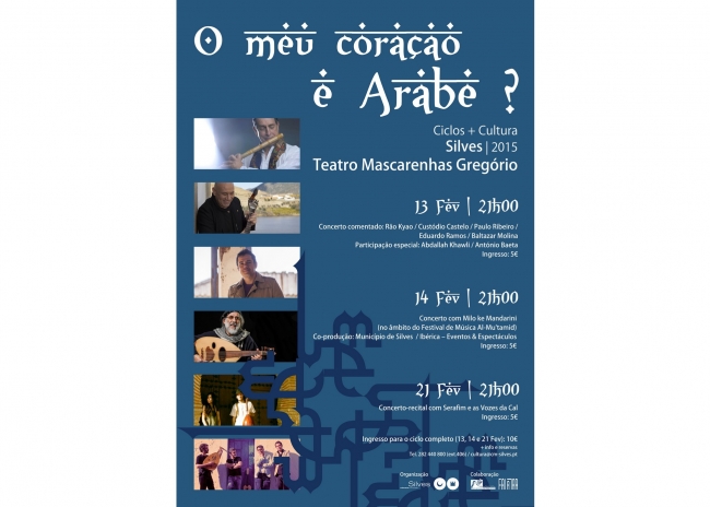 O ciclo “O meu coração é árabe?” abre no próximo dia 13 de fevereiro, pelas 21h00, com um encontro inédito, em formato de concerto comentado, entre cinco grandes músicos: Rão Kyao (flautas), Custódio Castelo (guitarra portuguesa), Paulo Ribeiro (voz e guitarra clássica), Eduardo Ramos (voz e alaúde árabe) e Baltazar Molina (percussões).