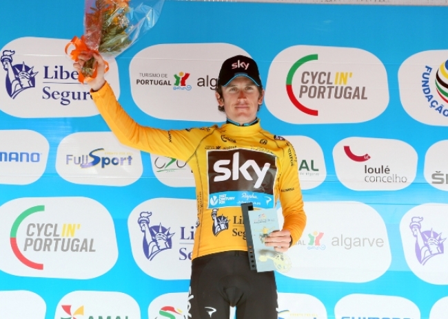 O britânico Geraint Thomas cortou a meta integrado no pelotão e sucedeu ao polaco Michal Kwiatkowski (Etixx-QuickStep) na galeria de vencedores da Volta ao Algarve. O corredor natural do País de Gales concluiu a competição com 27 segundos de vantagem sobre Kwiatkowski e com 1m11s relativamente ao português Tiago Machado (Katusha), que completaram o pódio.