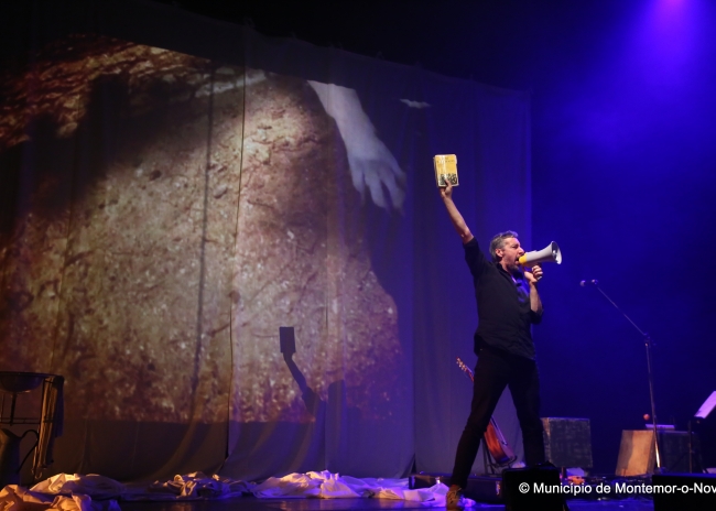 “Levantamos o pó dos tempos, levantamos um livro bem lá no alto, levantamos ainda a cabeça e o corpo, e, acima de tudo, tentamos levantar-nos como comunidade”. Um músico de hoje conta e canta as histórias do livro – Serão necessárias novas músicas de intervenção? – Numa conversa franca com o espectador vamos descobrindo a musicalidade nas palavras e nas ideias de Saramago. Aqui reflete-se sobre a democracia – que mundo queremos afinal? E tudo isto num concerto.