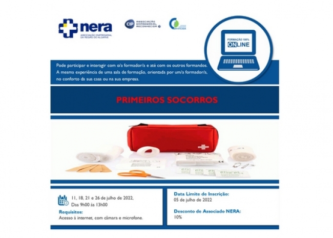 Com o objetivo de no final da ação de formação, os participantes serem capazes de perante uma situação de emergência, saberem planear, avaliar e executar os primeiros socorros, o NERA irá realizar nos dias 11, 18, 21 e 26 de julho de 2022, entre as 09h00 e as 13h00, a ação de formação: Primeiros Socorros.