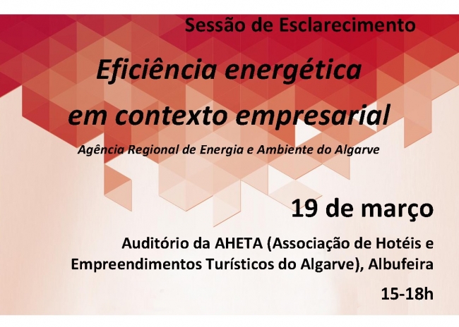 Na próxima quinta-feira, 19, a partir das 15h00, realiza-se no Auditório da Associação de Hotéis e Empreendimentos Turísticos do Algarve (AHETA), em Albufeira, uma sessão de esclarecimento sobre Eficiência Energética em contexto empresarial.