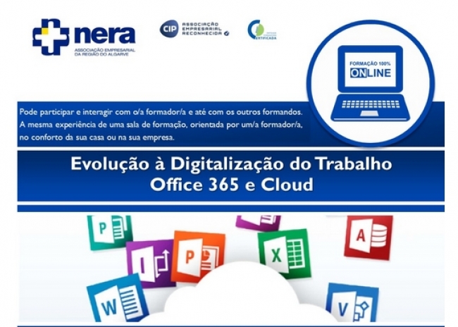 Com o objetivo de promover a digitalização e organização do trabalho em formato cloud, reduzir custos com aquisição e manutenção de hardware e aumentar a viabilidade da realização de trabalho remoto, o NERA irá realizar, nos dias 04, 10, 11, 17 e 18 de novembro de 2022, a ação de formação: Evolução da Digitalização do Trabalho - Office 365 e Cloud.