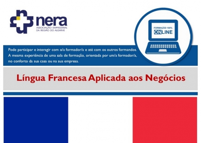 Com o objetivo de dotar os formandos com um vasto leque de conhecimentos linguísticos que lhes permitam desenvolver competências da língua francesa aplicada à realidade empresarial, o NERA irá realizar, em formato online, nos dias 08, 09, 15, 16, 22, 23, 29 e 30 de novembro de 2022, entre as 14h30 e as 17h00, a ação de formação: Língua Francesa Aplicada aos Negócios.