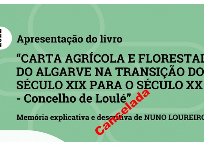 Por motivos de força maior, a que somos alheios, informamos que foi cancelada a presentação do livro CARTA AGRÍCOLA E FLORESTAL DO ALGARVE NA TRANSIÇÃO DO SEC. XIX PARA O SEC. XX – CONCELHO DE LOULÉ,