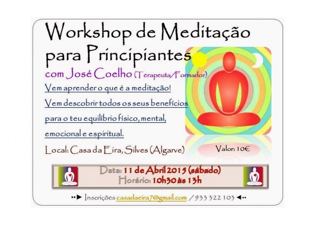 A Casa da Eira, em Silves, promove no próximo dia 11 de abril, um Workshop de Meditação para Principiantes dinamizado pelo Terapeuta José Coelho.