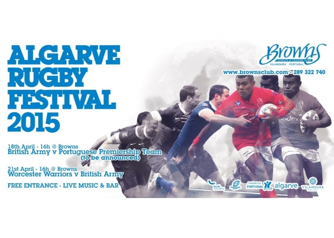 O Browns Sports & Leisure Club - Vilamoura irá promover no próximo mês de Abril o “Algarve Rugby Festival 2015”, que contará com a presença de equipas de topo mundial, nomeadamente British Army (campeão do mundo de equipas das forças armadas), Worcester Warriors XV e uma equipa do Campeonato Nacional Português (Divisão de Honra).