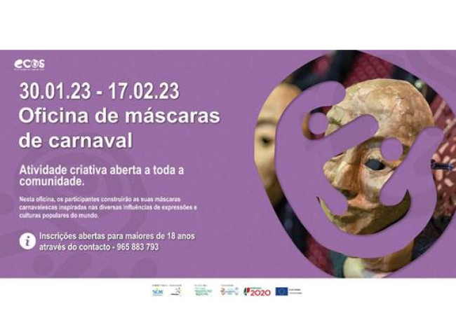A Oficina de Máscaras de Carnaval terá lugar nas instalações do projeto em Vale Paraíso (Urb. Serve Faso 8 Armazéns E, F, G).