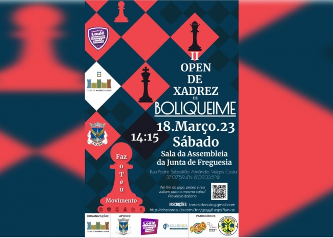 Devido ao crescente número de praticantes e entusiastas, a Junta de Freguesia de Boliqueime irá receber o II Open de Xadrez.