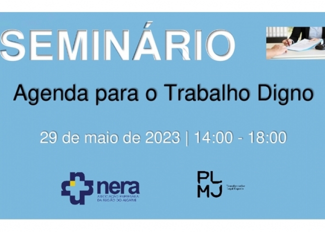 No âmbito do protocolo de cooperação estabelecido entre o NERA – Associação Empresarial da Região do Algarve e a Sociedade de Advogados PLMJ Advogados, SP, RL, vimos pelo presente informar que terá lugar no próximo dia 29 de maio, pelas 14h00m, no Auditório do NERA, um Seminário dedicado ao tema: "Agenda para o Trabalho Digno", que tem como objetivo, através de uma abordagem prática e atual, analisar as principais alterações legislativas no âmbito da Agenda para o Trabalho Digno.