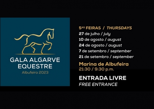 A primeira edição da Gala Equestre Algarve – Albufeira 2023 vai decorrer na Marina de Albufeira de 27 de julho a 21 de setembro, totalizando cinco espetáculo que visam, para além da fruição da elegância da relação entre os humanos e os animais, homenagear o Cavalo Lusitano.