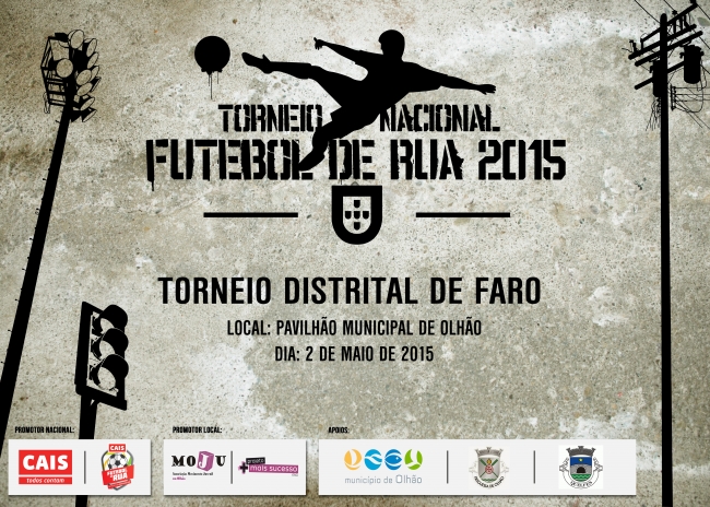 A MOJU – Associação Movimento Juvenil em Olhão e o Projeto Mais Sucesso E5G promovem, pelo segundo ano, o Torneio Distrital de Faro do Campeonato Nacional de Futebol de Rua 2015.