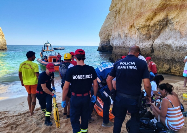 Na sequência de um alerta recebido pelas 15h30, através do 112, a informar para a queda de uma pessoa numa arriba, foram ativados de imediato para o local elementos do Comando-local da Polícia Marítima de Portimão, tripulantes da Estação Salva-vidas de Ferragudo, uma equipa da Viatura Médica de Emergência e Reanimação (VMER) do INEM, elementos dos Bombeiros Voluntários de Lagos e os Nadadores-Salvadores de serviço na praia.