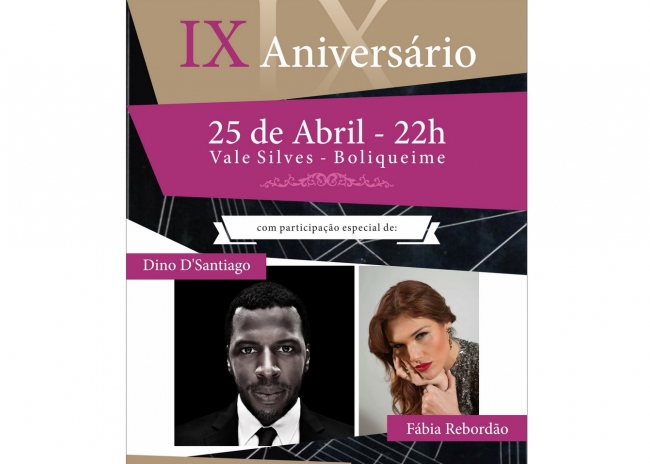 A data será celebrada com a atuação de Dino D`Santiago e Fábia Rebordão.