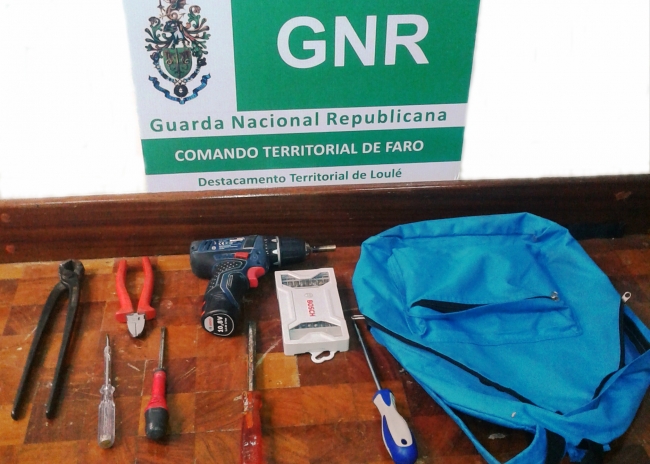 Os indivíduos, que se introduziram no interior da propriedade através de escalamento do muro que delimita o espaço, traziam consigo uma mochila com várias ferramentas (chaves de fendas, alicates, entre outras) e com uma aparafusada, objetos entretanto apreendidos e dos quais os mesmos se socorriam para concretizar o ilícito.