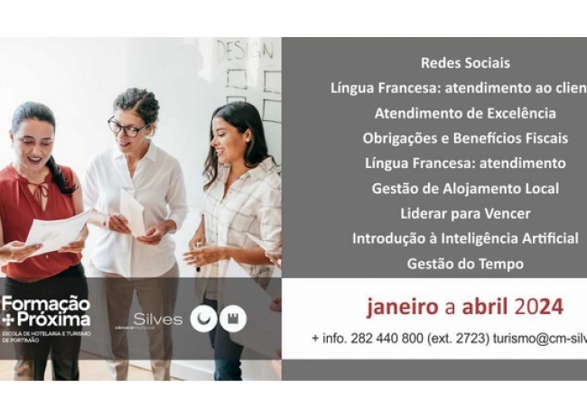 O Município de Silves em parceria com o Turismo de Portugal e a Escola de Hotelaria e Turismo de Portimão (EHTP), irá iniciar entre janeiro e abril de 2024 a segunda fase do programa Formação + Próxima.