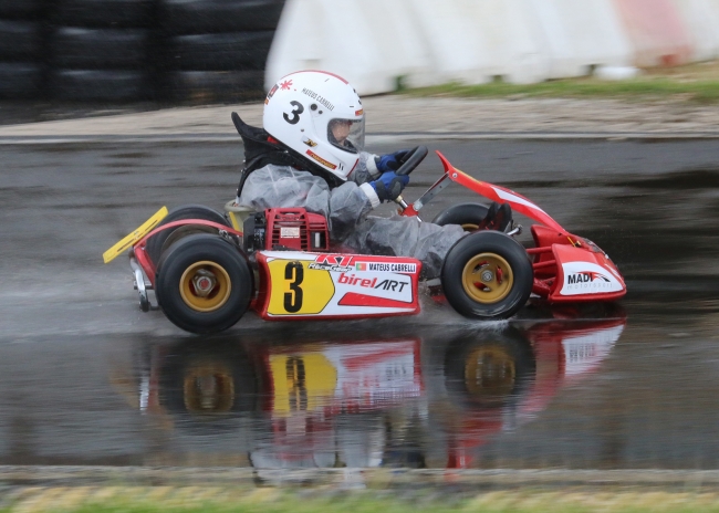 Mateus Cabrelli surgiu na segunda jornada dupla do Campeonato Nacional de Karting na liderança com 78 pontos, totalizado mais 21 do que o segundo classificado. Com mais uma boa prestação – que exigiu bastante empenho devido às condições atmosféricas adversas (muita chuva)… mas não só – conseguiu ampliar a vantagem de 21 para 29 pontos relativamente ao segundo classificado.