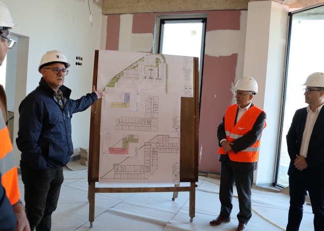 Já na zona nascente da cidade, junto à Mina de Salgema, o programa de visita passou pela obra de habitação na Clona, onde já se avista a estrutura dos 64 fogos (23 T1, 28 T2 e 1 T4, bem como 2 espaços destinados ao uso comercial) que aqui irão nascer. A obra mais emblemática da Estratégia Local de Habitação do Concelho de Loulé tem um valor de 11,8 milhões de euros, com um cofinanciamento de 4,2 milhões de euros (financiamento PRR de 30 fogos em regime de arrendamento apoiado). Prevê-se a sua conclusão num espaço de 15 meses.