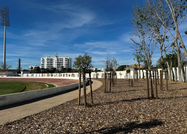 O projeto “Adaptação aos efeitos de Ilha de Calor Urbano - Estádio Municipal de Loulé” que se desenvolveu naquela que é das principais instalações desportivas municipais passou pela plantação de 197 árvores e arbustos que permitirão aumentar o conforto microclimático, visual e acústico de todo o espaço intervencionado. Foram privilegiadas espécies autóctones e/ou adaptadas às condições edafoclimáticas locais, nomeadamente alfarrobeiras, oliveiras e amendoeiras, entre outras.
