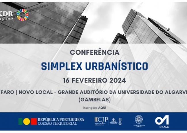 O Instituto de Ciências Jurídico-Políticas da Faculdade de Direito da Universidade de Lisboa promove a apresentação do “Simplex Urbanístico”, no dia 16 de fevereiro (sexta-feira), pelas 9h30, no Grande Auditório da Universidade do Algarve, no Campus de Gambelas, em Faro.