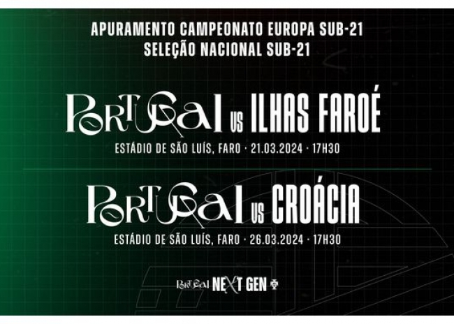 Os bilhetes para os próximos jogos da Seleção Nacional Sub21 no Algarve, a contar para a fase de qualificação para o Europeu 2025, frente às Ilhas Faroé e Croácia, já estão disponíveis para venda na Associação de Futebol do Algarve (AFA).