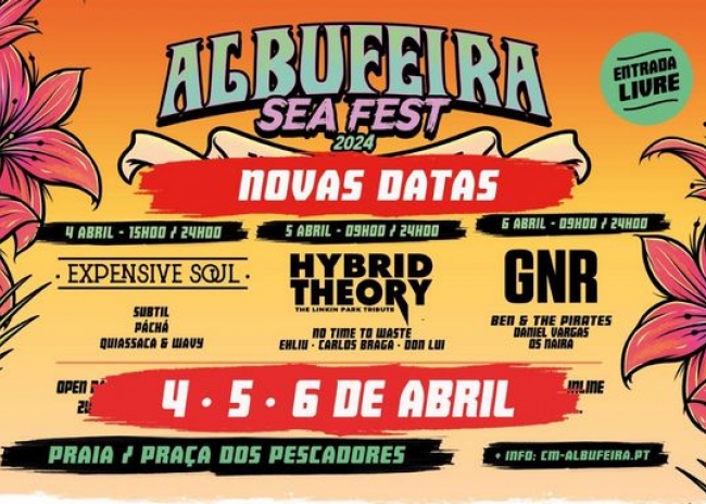 Devido às condições climatéricas adversas previstas pelo IPMA – Instituto Português do Mar e da Atmosfera, o festival a pensar nas famílias e na juventude foi adiado para os próximos dias 4, 5 e 6 de abril. A terceira edição do “Albufeira SeaFest” volta a acontecer na Praça e Praia dos Pescadores e promete ao som de boa música, desporto e animação dar a conhecer os talentos albufeirenses e comércio local.