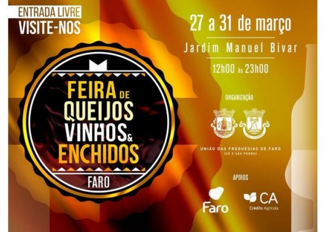 A União das Freguesias de Faro, vai realizar de 27 a 31 de março, a 9ª edição Feira de Queijos, Vinhos e Enchidos que decorrerá no Jardim Manuel Bivar, na Baixa de Faro, junto à Doca.