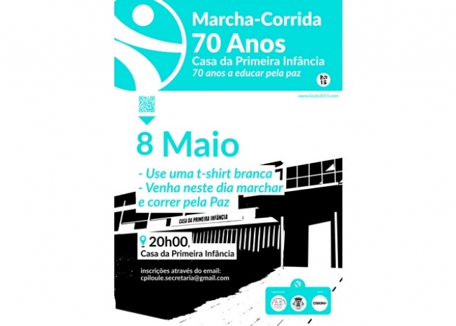 Integrada nas Comemorações do 70 Aniversário da Casa da Primeira Infância, mais conhecida pela “ Creche de Loulé”, e com o objetivo de unir gerações e afetos, caminhando pele Paz, realiza-se no próximo dia 8 de Maio a Marcha/Corrida “70 anos a Educar para a Paz”.