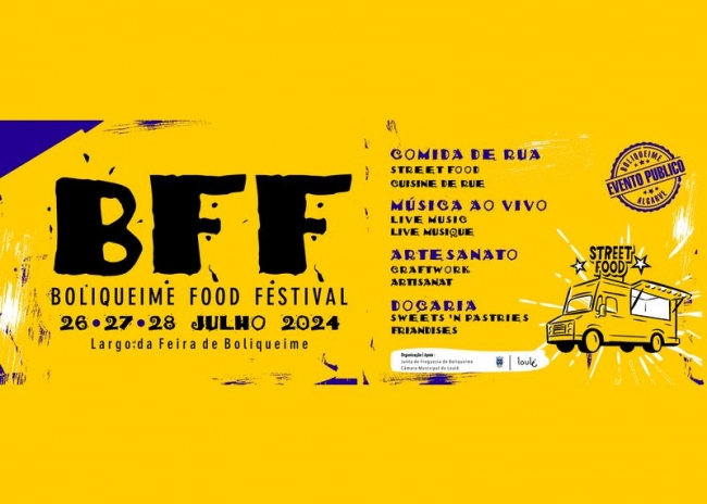 O BFF - Boliqueime Food Festival acontece nos dias 26, 27 e 28 de julho, com uma combinação irresistível de street food, música ao vivo e artesanato.