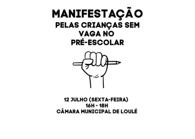Sexta-feira, dia 12 de julho, familiares e crianças irão reunir-se em frente à Câmara Municipal de Loulé, às 16h, em manifestação pela luta de soluções imediatas para a falta de vagas no pré-escolar.