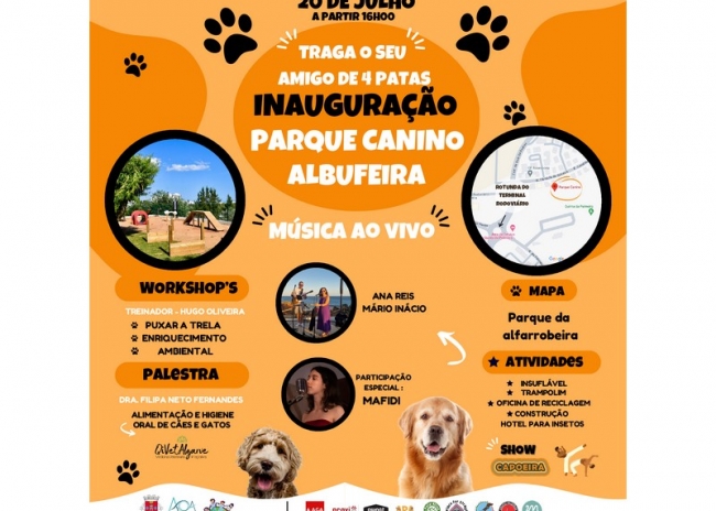 No próximo dia 20 de julho (sábado), a partir das 16h00, a Junta de Freguesia de Albufeira e Olhos de Água inaugura o Parque Canino de Albufeira, localizado no Parque Verde da Alfarrobeira, junto ao terminal rodoviário.