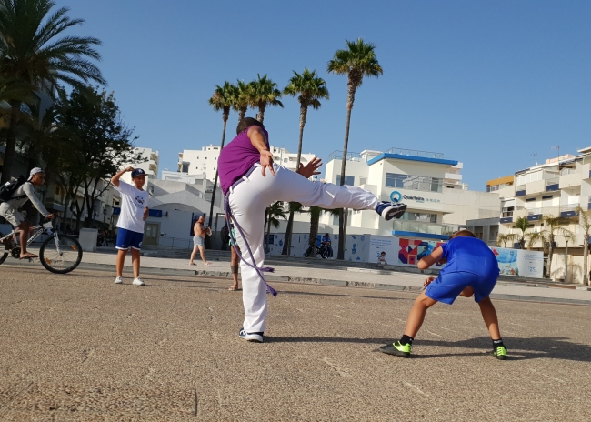 A Praça do Mar, em Quarteira, foi palco na passada sexta feira dia 19 ao fim da tarde de uma aula aberta de Capoeira Kids com o Mestre Moita.