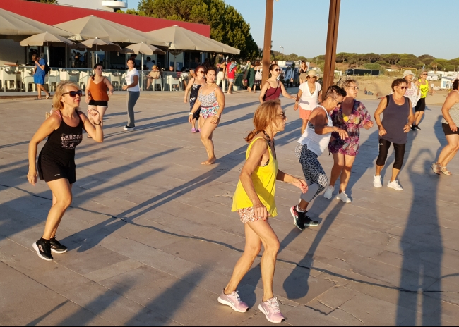 Residentes e veraneantes vão participando cada vez em maior número, incluindo nas varandas, a cada aula que passa no palco da Gaivota para tornar os dias mais ativos.