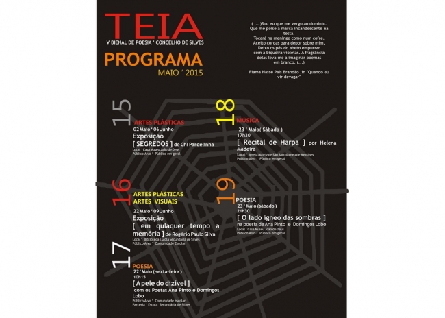 Mais informações sobre a TEIA poderão ser recolhidas junto da Casa Museu João de Deus através do telefone 282330189 ou do endereço de correio eletrónico casamuseu.joaodeus@cm-silves.pt.
